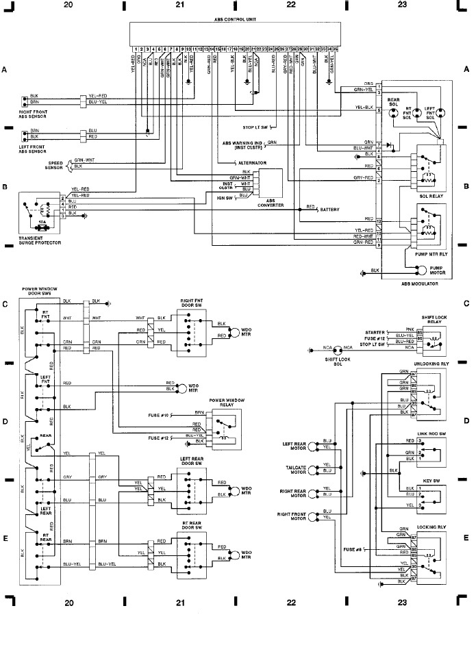 ABS Ctrl, power window/doors, shift lock rly (grid 20 – 23)