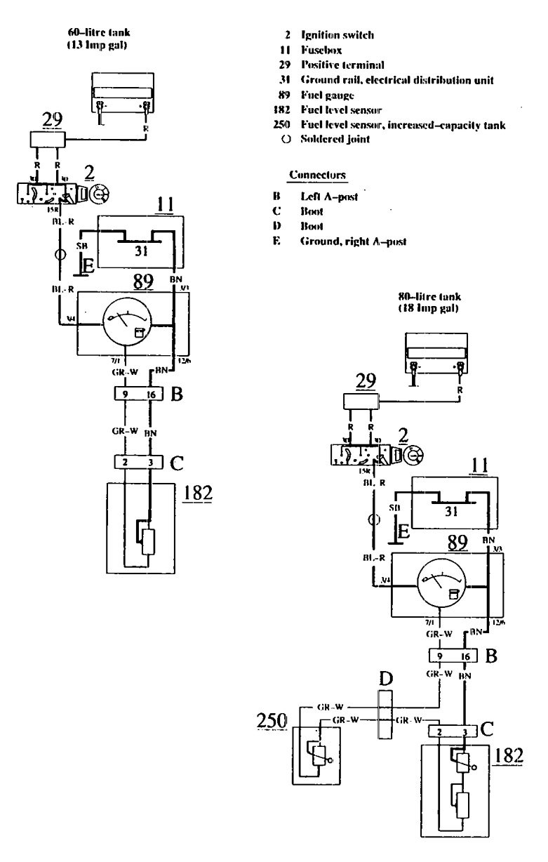 Volvo 740 (1990) – wiring diagrams – fuel warning
