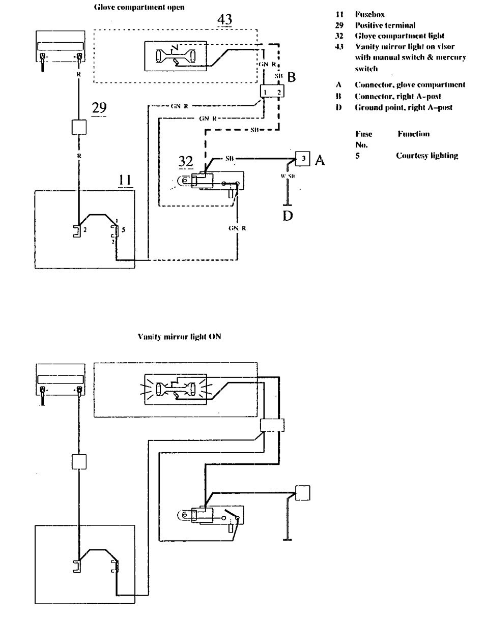 Volvo 740 (1990) – wiring diagrams – glove compartment lamp