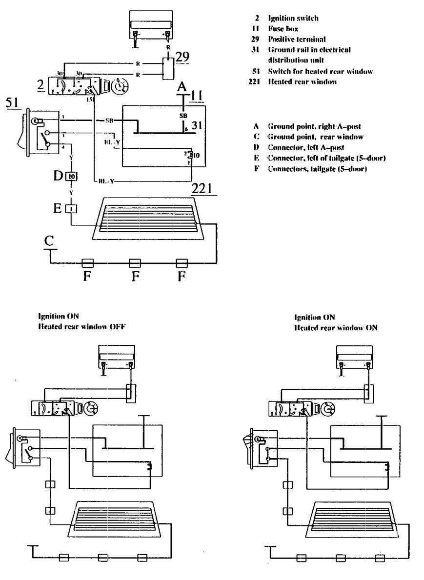 Volvo 740 (1990) – wiring diagrams – rear window defogger