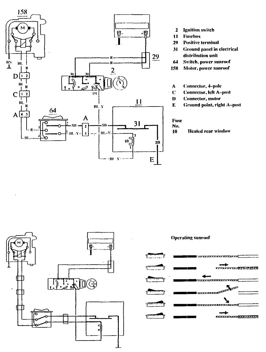 Volvo 740 (1990 – 1991) – wiring diagrams – sun roof
