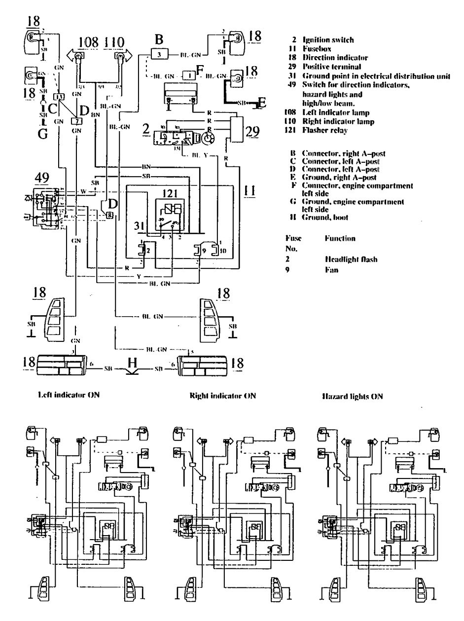 Volvo 740 (1990) – wiring diagrams – turn signal lamp