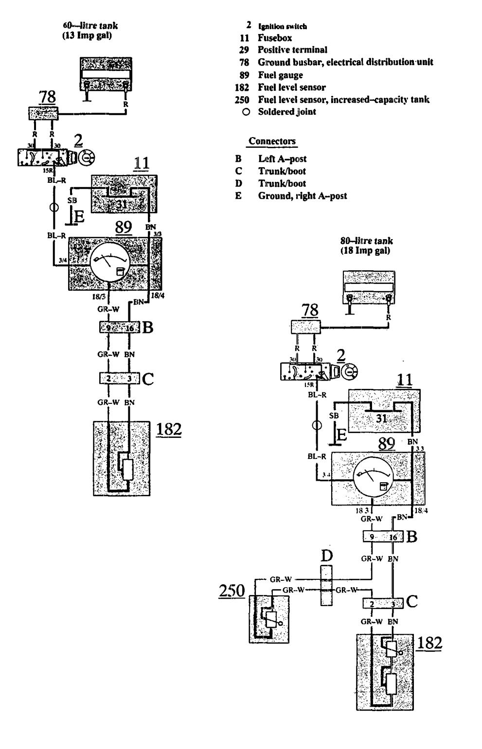 Volvo 740 (1991) – wiring diagrams – fuel warning