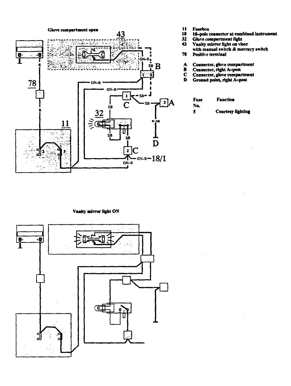 Volvo 740 (1991) – wiring diagrams – glove compartment lamp