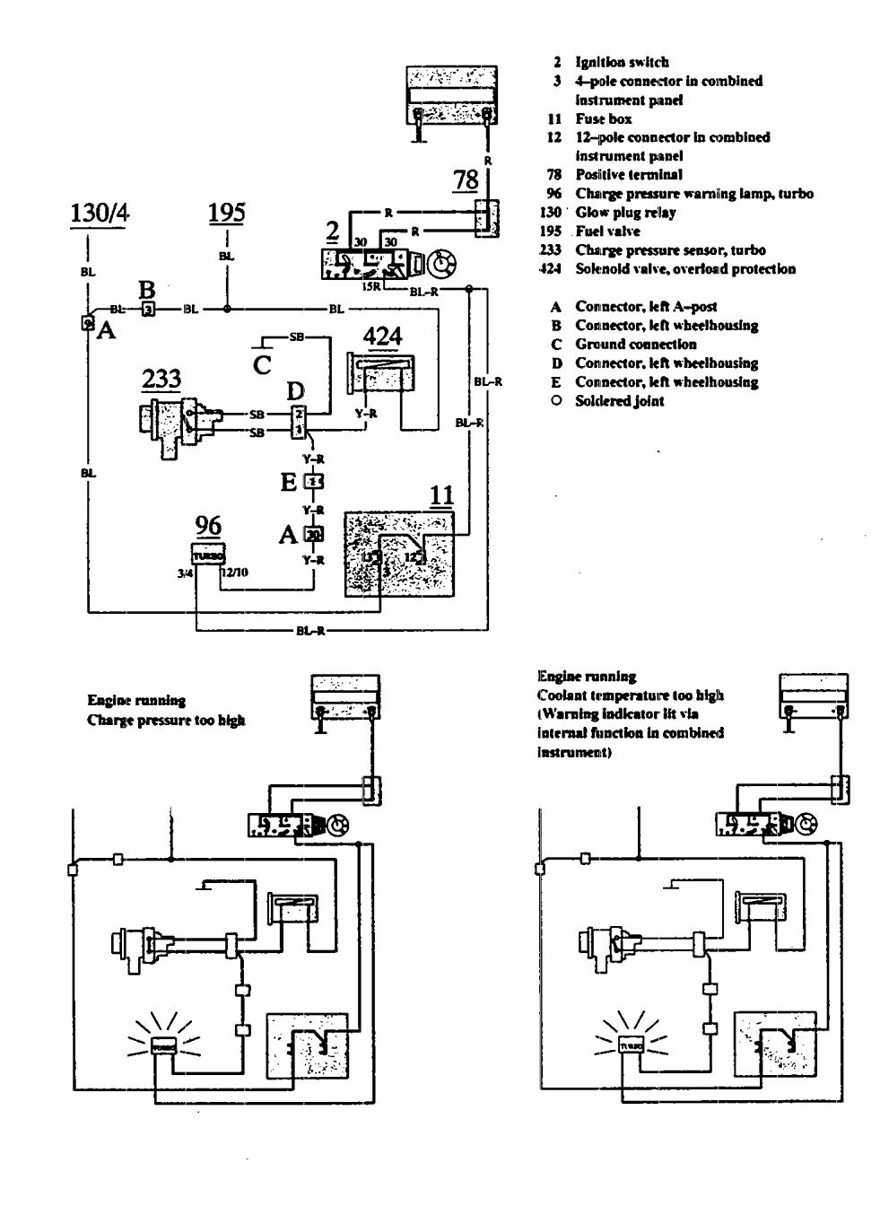 Volvo 740 (1991) – wiring diagrams – warning indicator