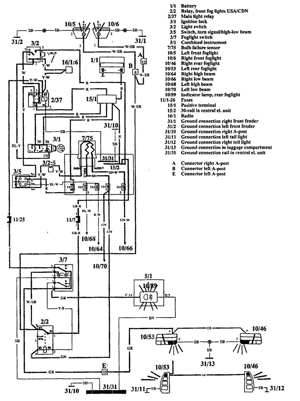 Volvo 740 (1992) – wiring diagrams – fog lamps