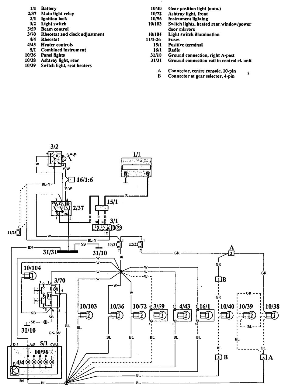 Volvo 740 (1992) – wiring diagrams – instrument panel lamps