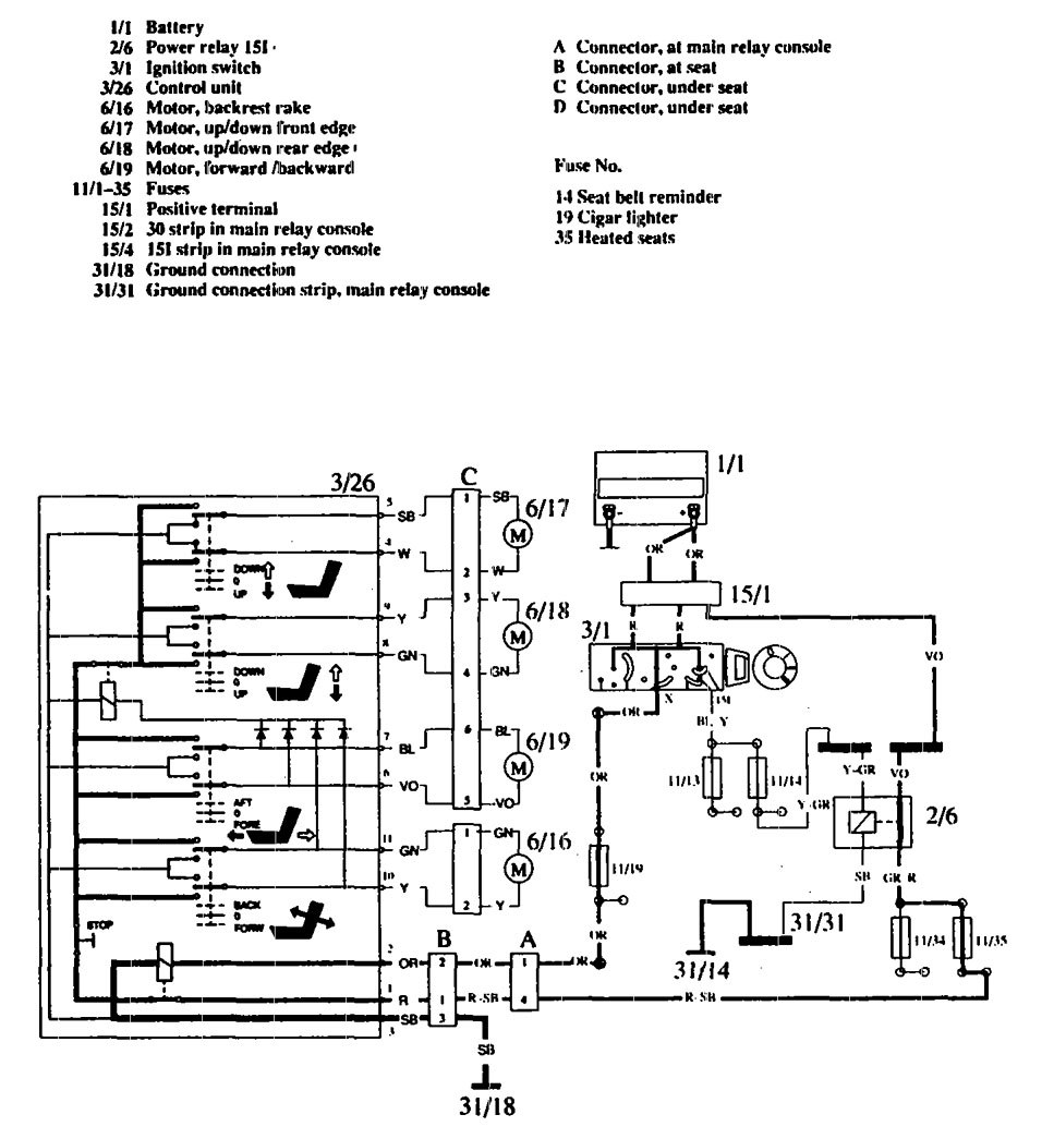 Volvo 760 (1990 – 1991) – wiring diagrams – power seats