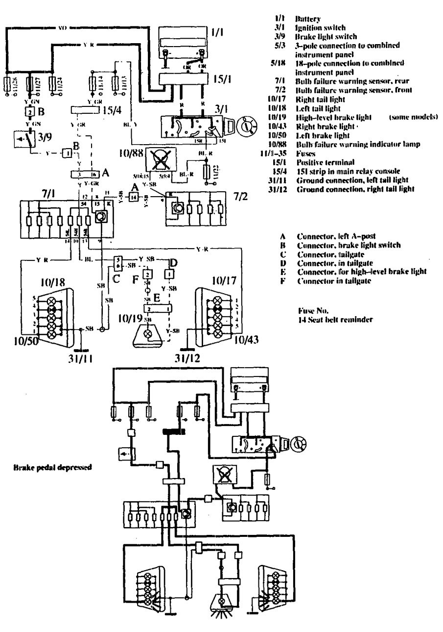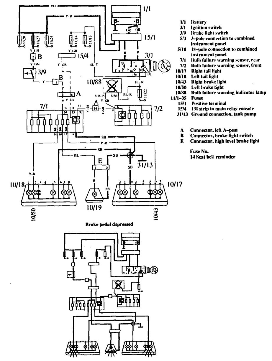 Volvo 760 (1990) – wiring diagrams – stop lamp