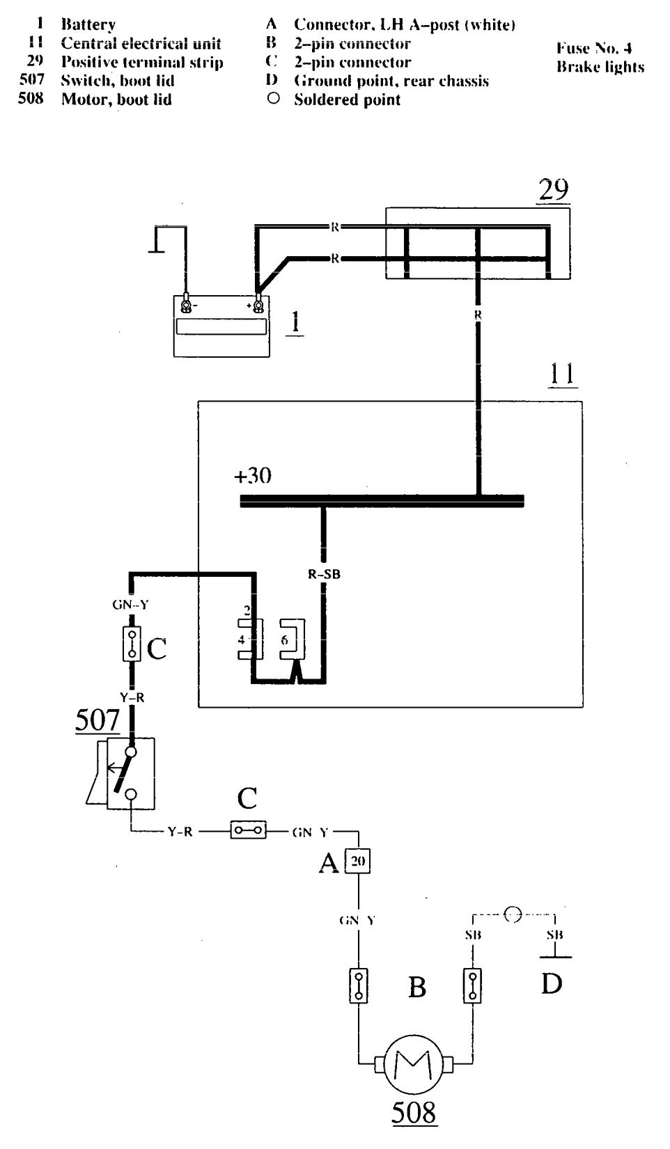 Volvo 780 (1990 – 1991) – wiring diagrams – luggage compartment release