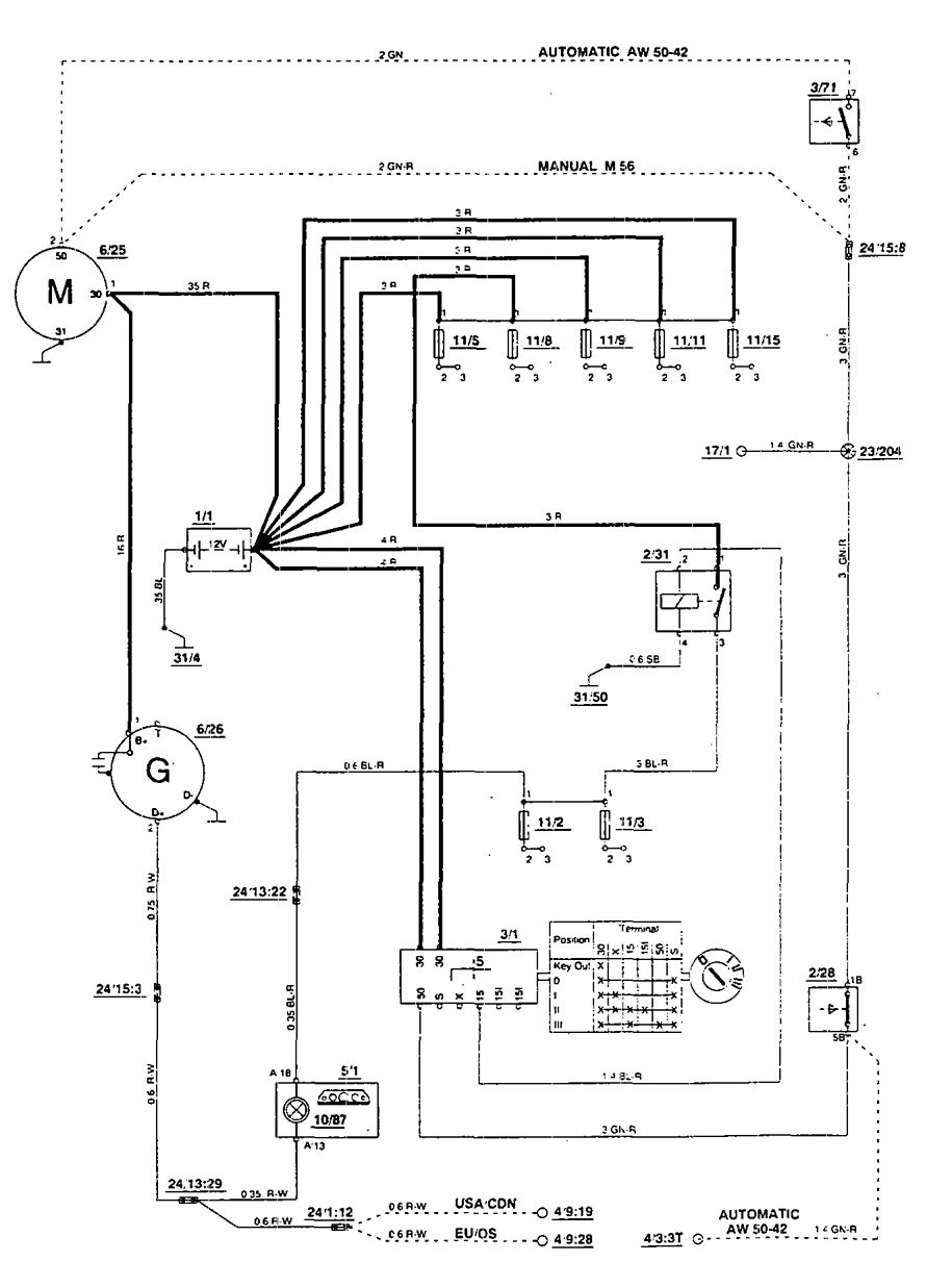 Volvo 850 (1995) – wiring diagrams – charging system