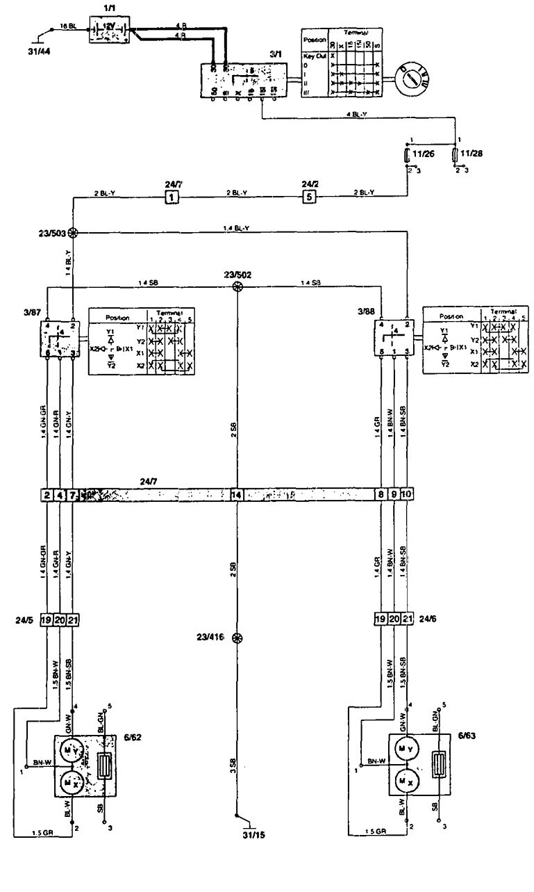 Volvo 850 (1995) – wiring diagrams – power mirrors