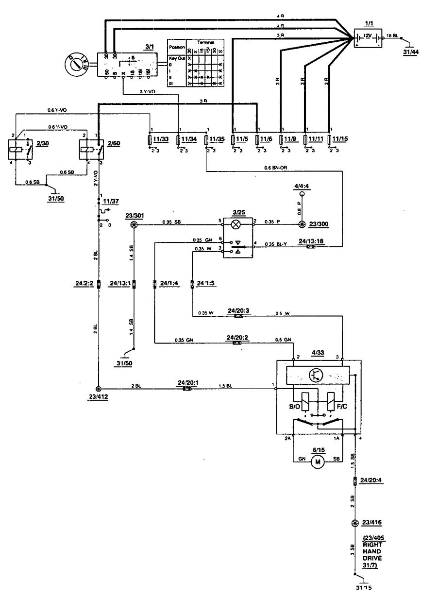 Volvo 850 – wiring diagram – sun roof (part 1)