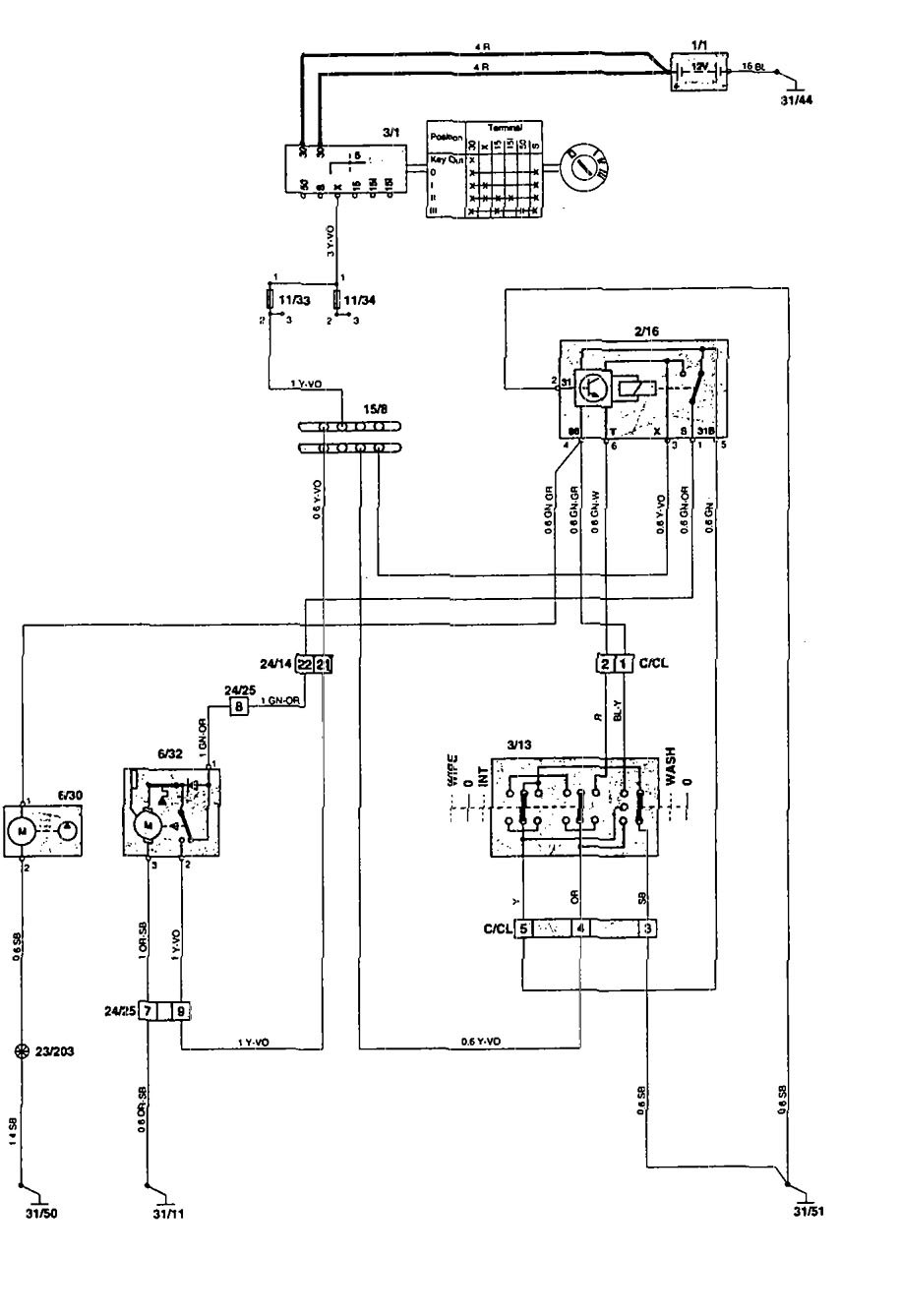 Volvo 850 - wiring diagram - wiper/washer (part 3)