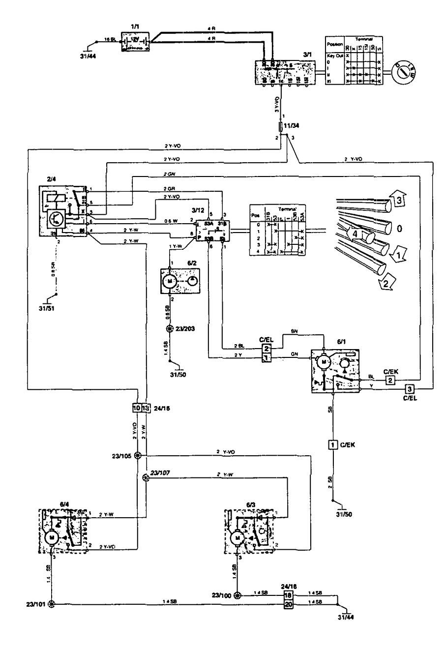 Volvo 850 - wiring diagram - wiper/washer (part 4)