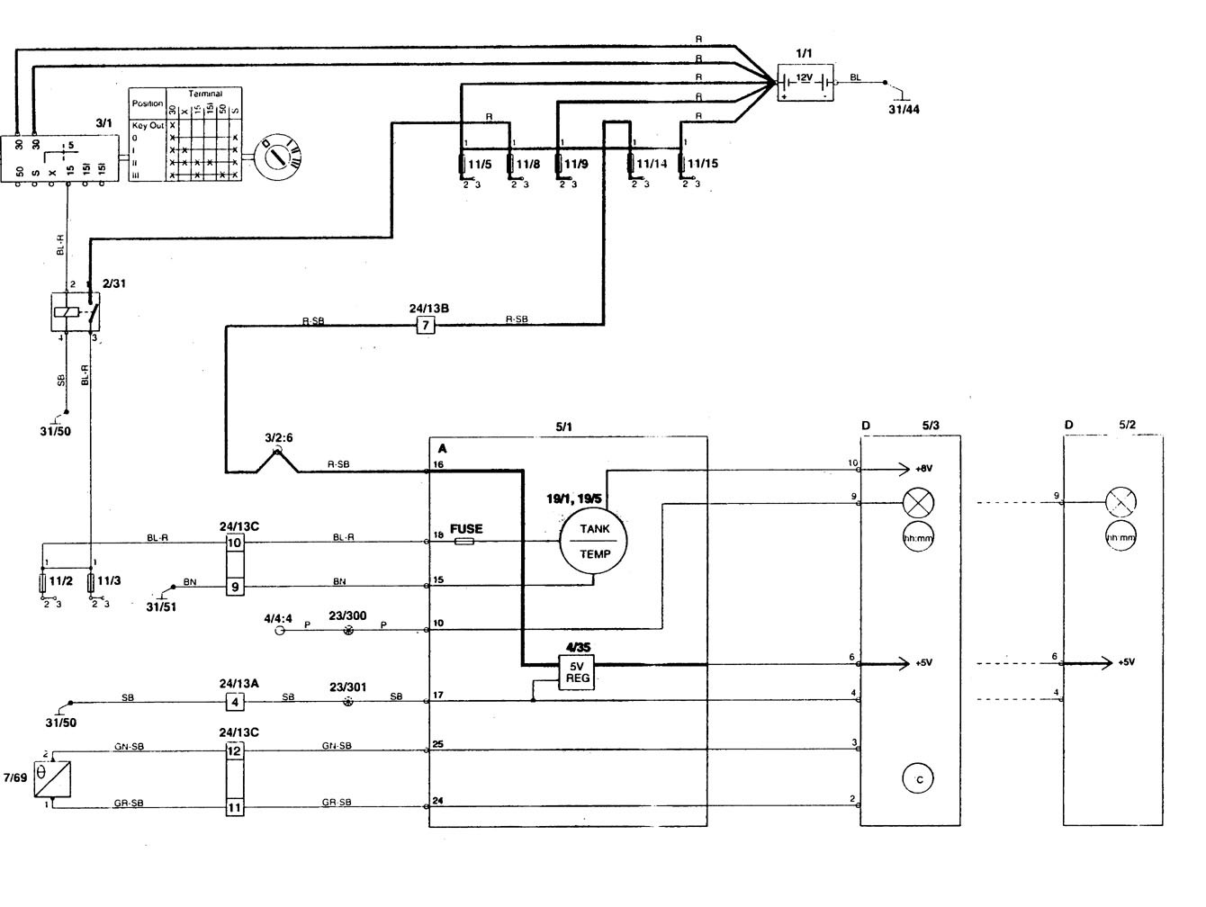 Volvo 850 (1996) – wiring diagrams – electronic compass/outside temperature