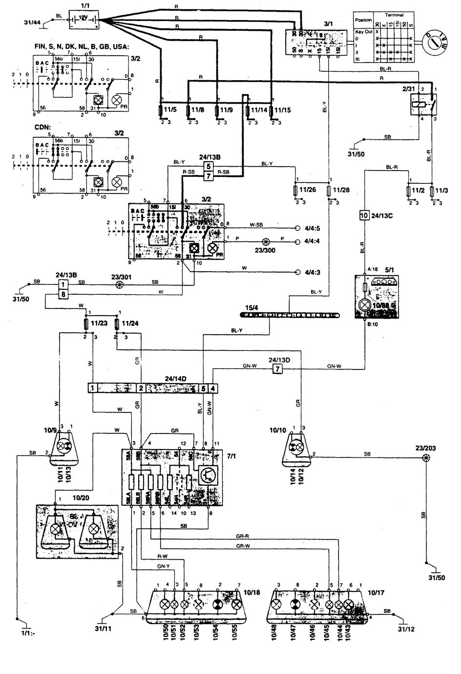 Volvo 850 (1996 – 1997) – wiring diagrams – parking lamp