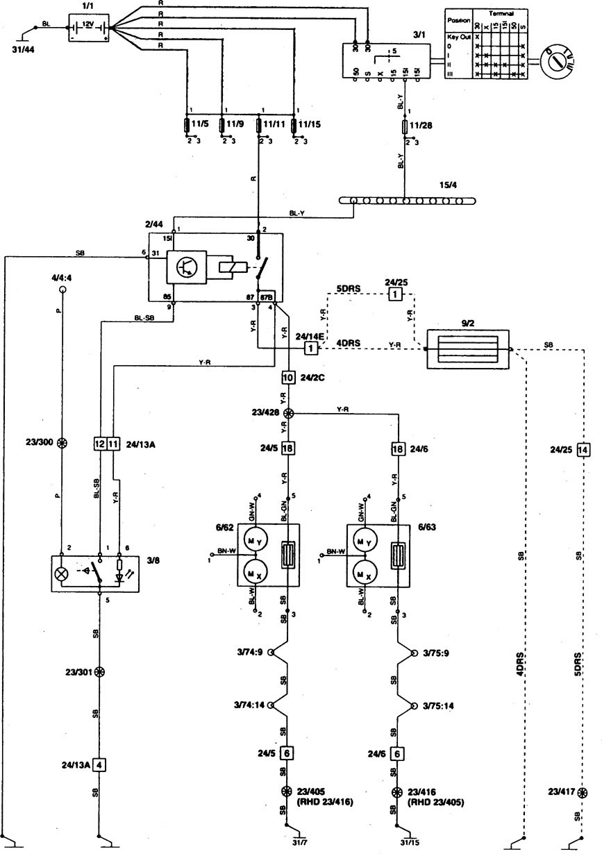 Volvo 850 (1996 – 1997) – wiring diagrams – rear window defogger