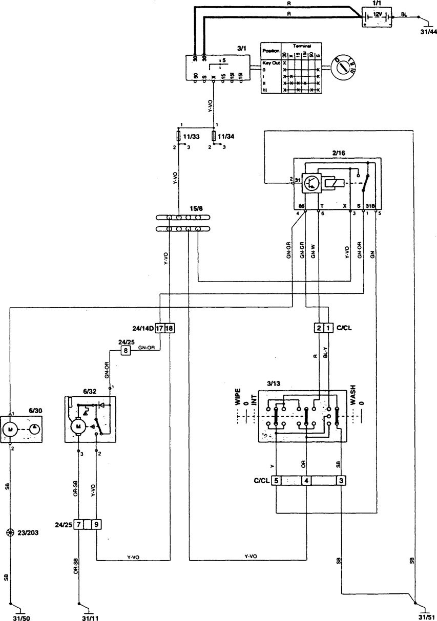 Volvo 850 (1997) – wiring diagrams – wiper/washer