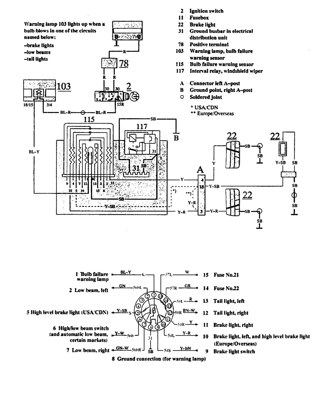 Volvo 940 (1991) – wiring diagrams – audible warning system