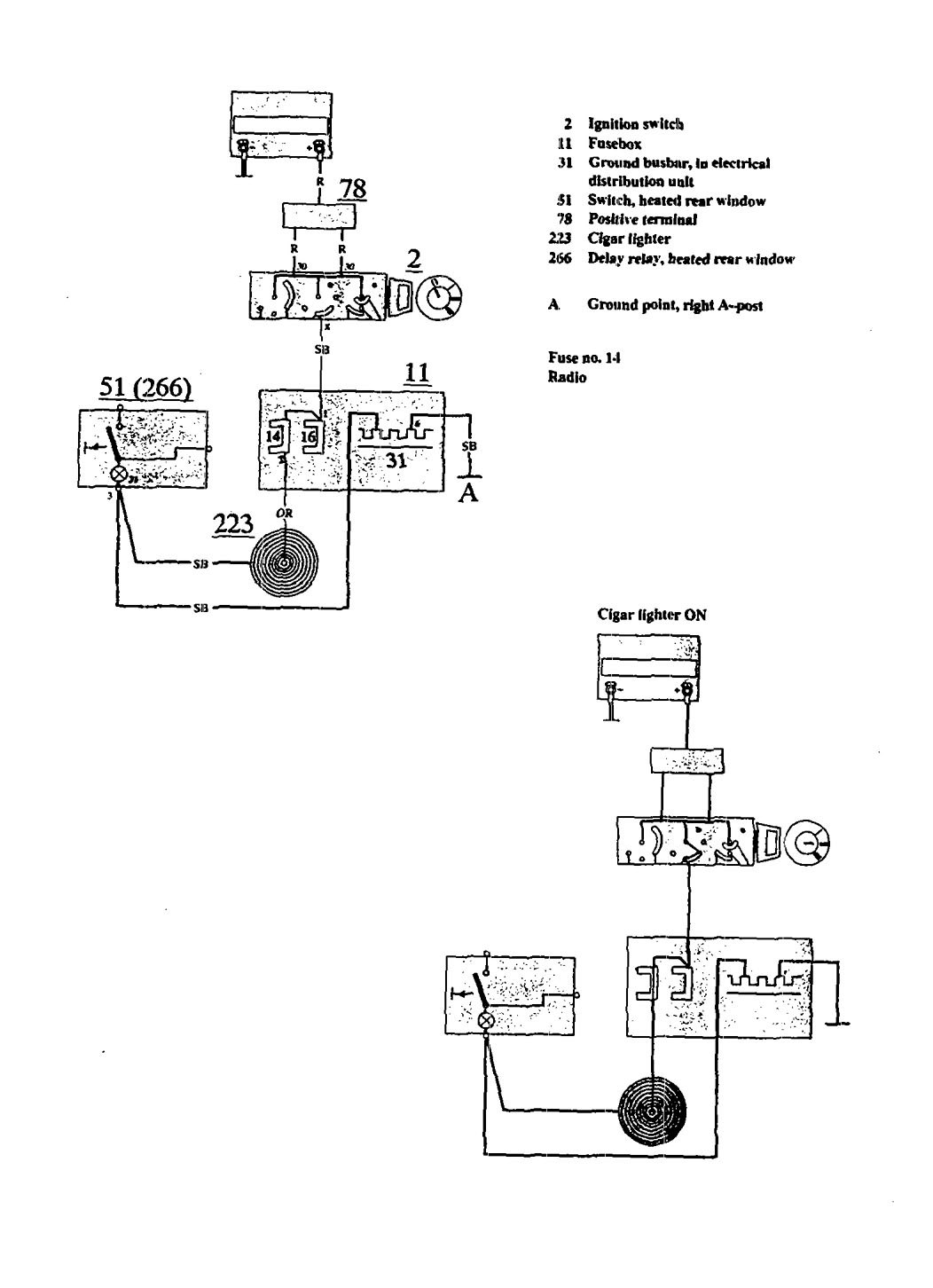 Volvo 940 (1991) – wiring diagrams – cigar lighter