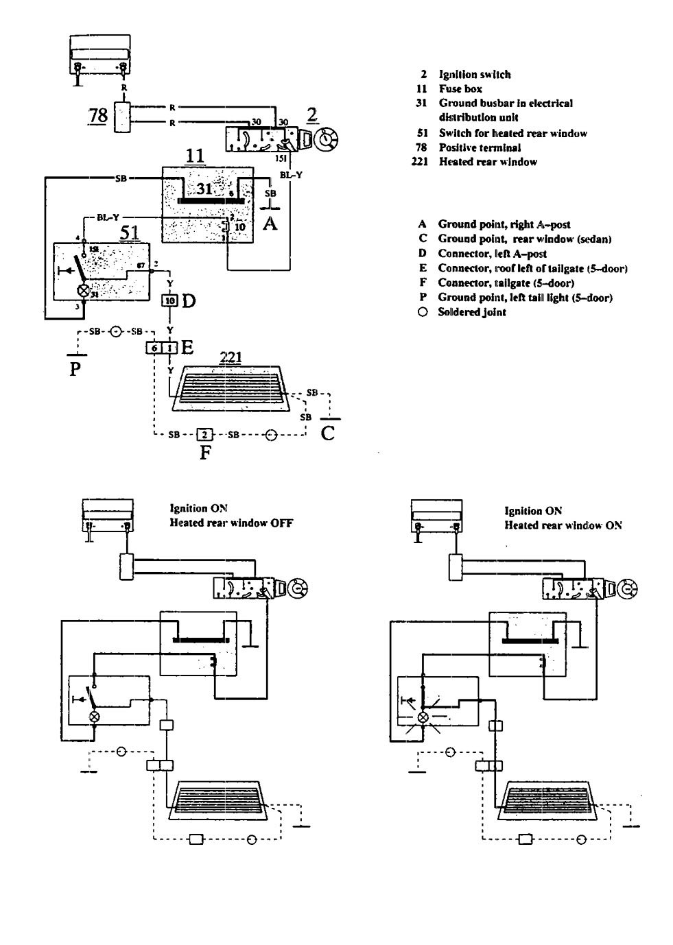 Volvo 940 (1991) – wiring diagrams – rear window defogger