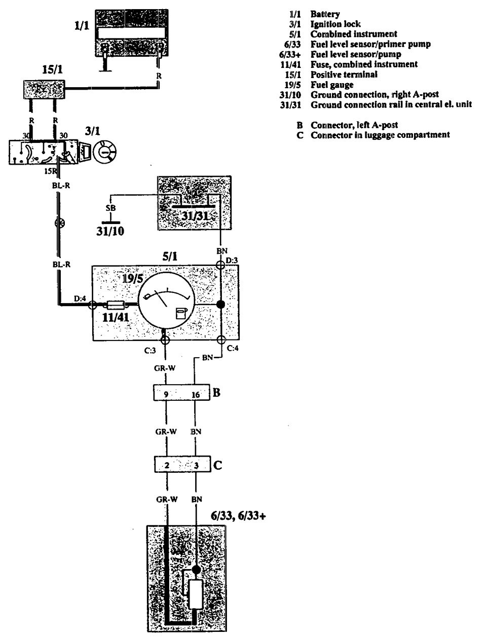 Volvo 940 (1992) – wiring diagrams – fuel warning