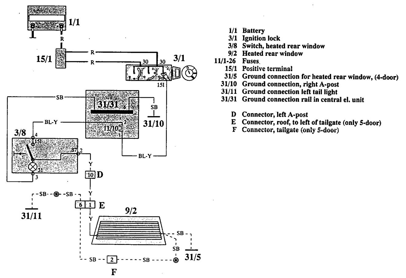 Volvo 940 (1992) – wiring diagrams – rear window defogger