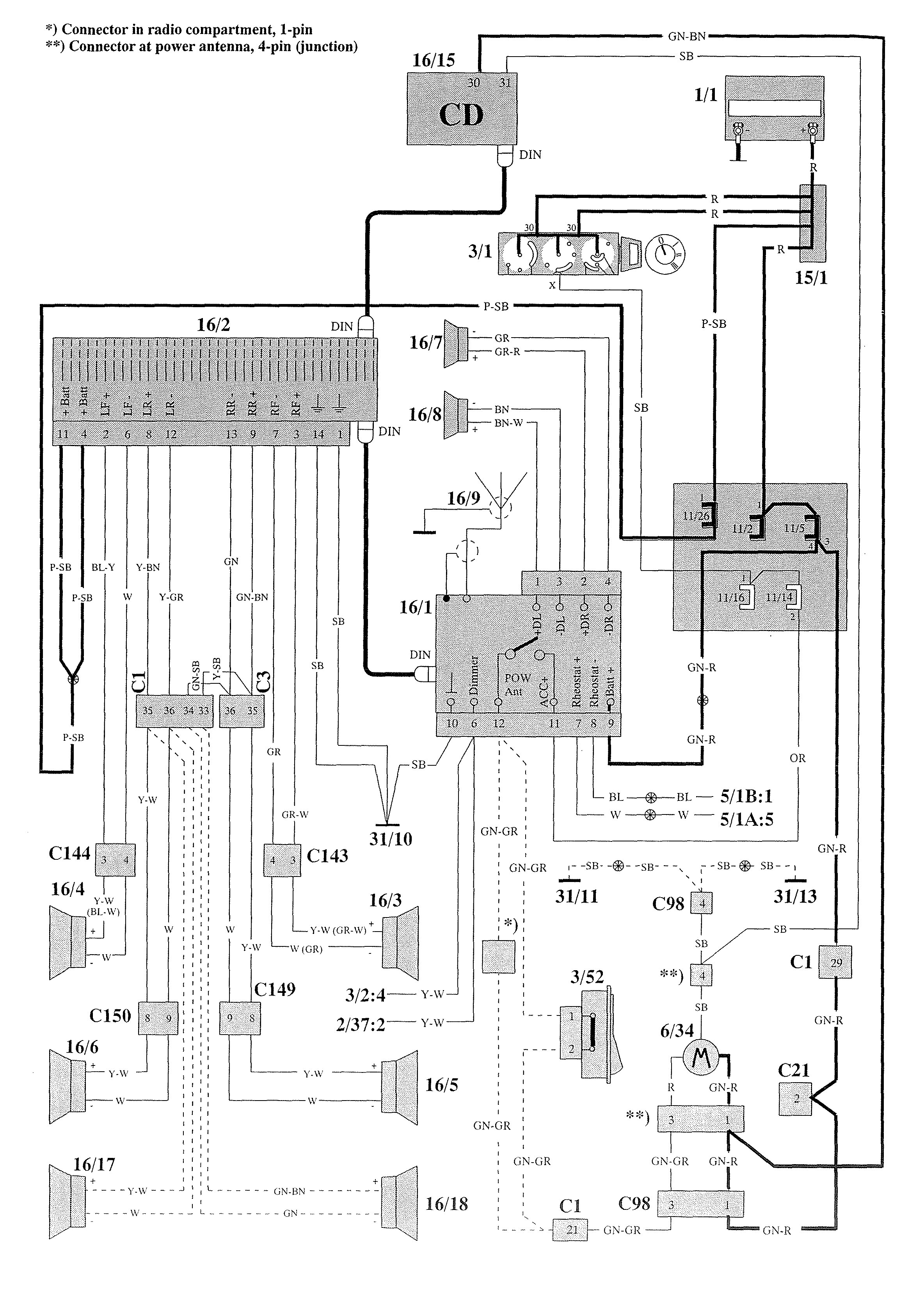 Volvo 940 (1993) – wiring diagrams – audio