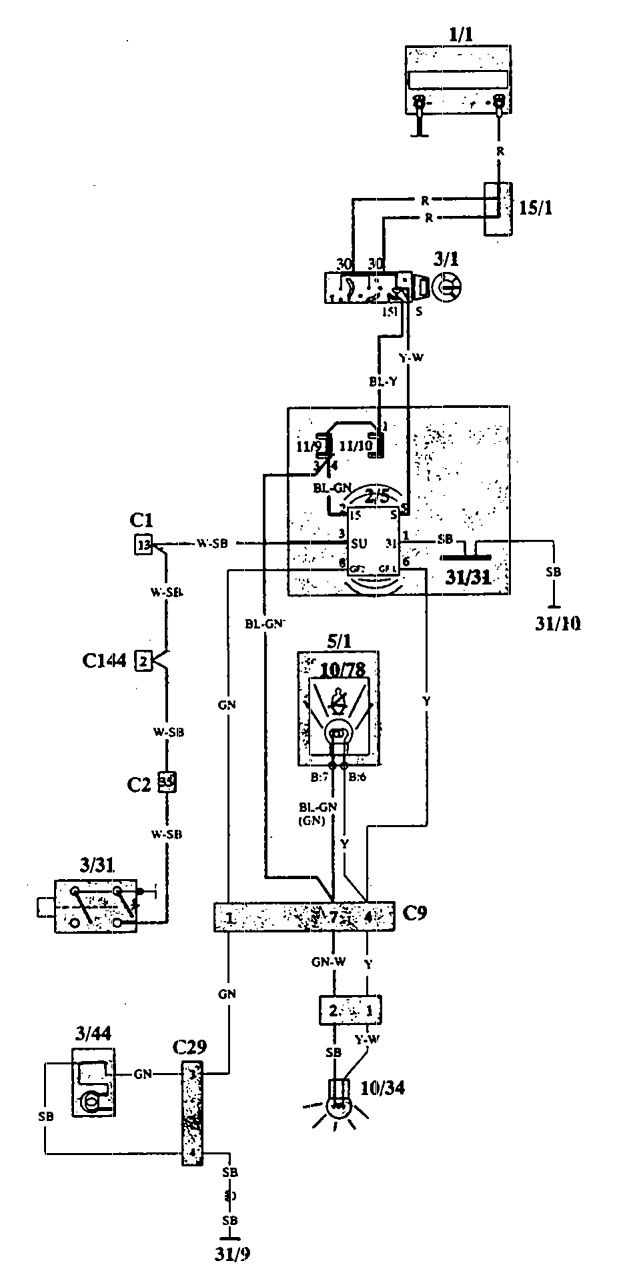 Volvo 940 (1993 – 1994) – wiring diagrams – seat belt warning