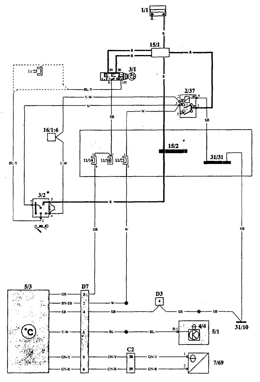 Volvo 940 (1993) – wiring diagrams – temperature warning