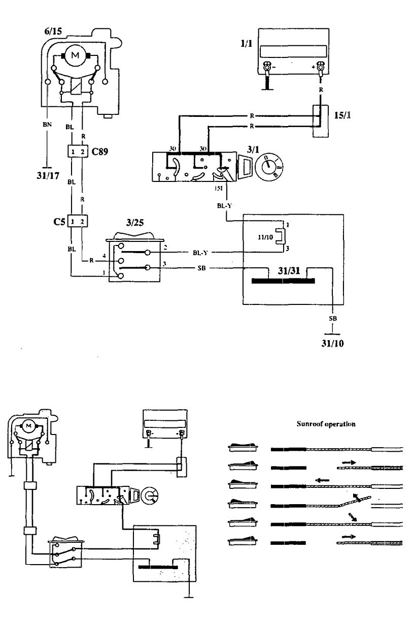 Volvo 940 (1994) – wiring diagrams – sun roof