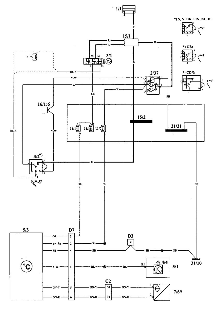 Volvo 940 (1994) – wiring diagrams – temperature warning