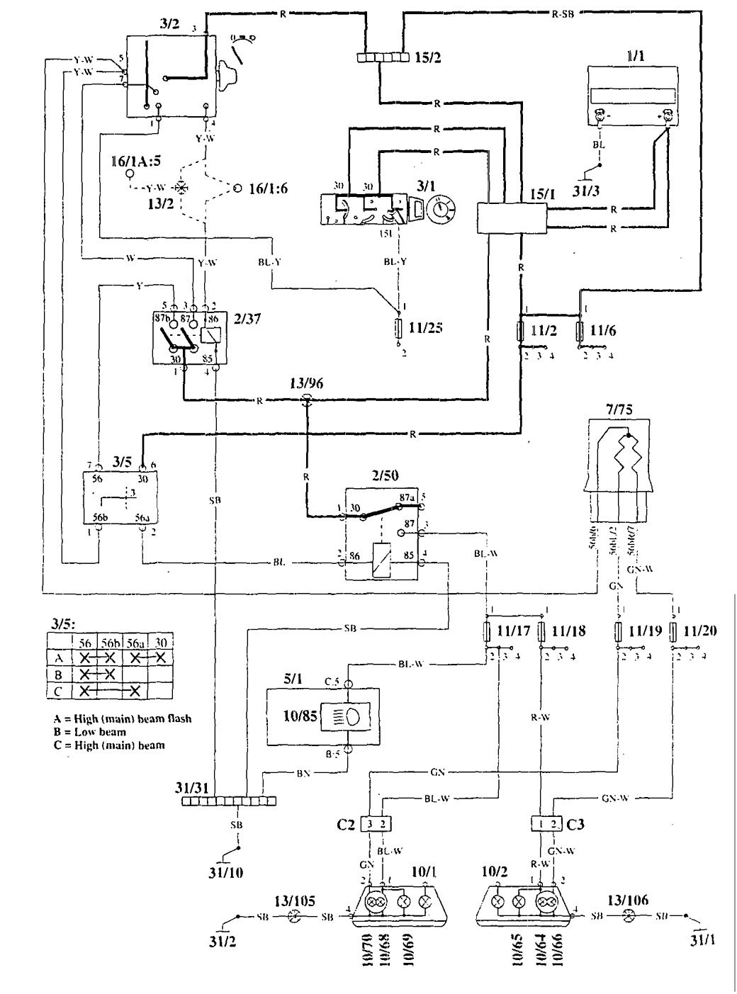 Volvo 940 (1995) – wiring diagrams – headlamps