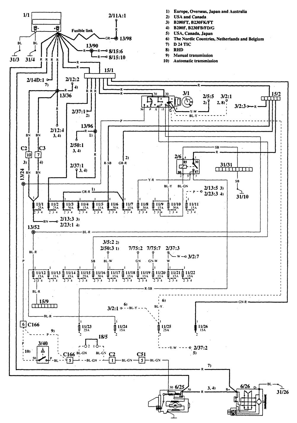 Volvo 940 (1995) – wiring diagrams – power distribution
