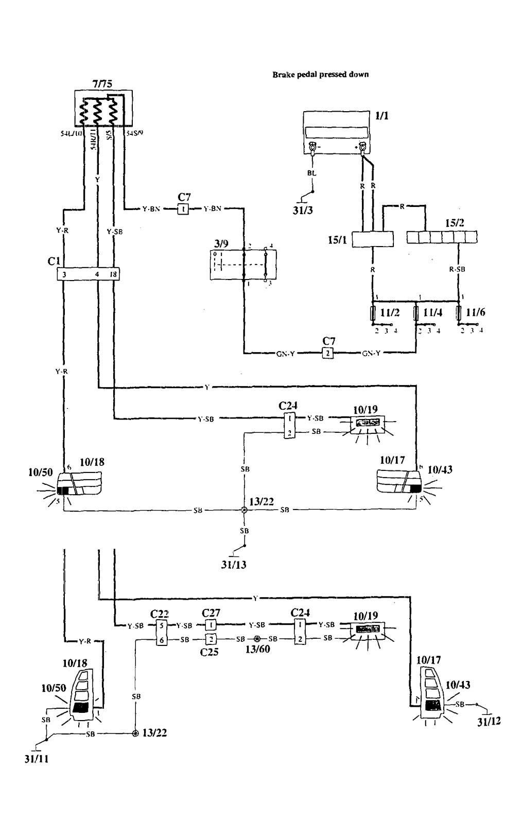 Volvo 940 (1995) – wiring diagrams – stop lamp