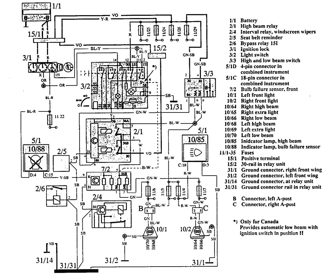 Volvo 960 (1992 – 1994) – wiring diagrams – headlamps