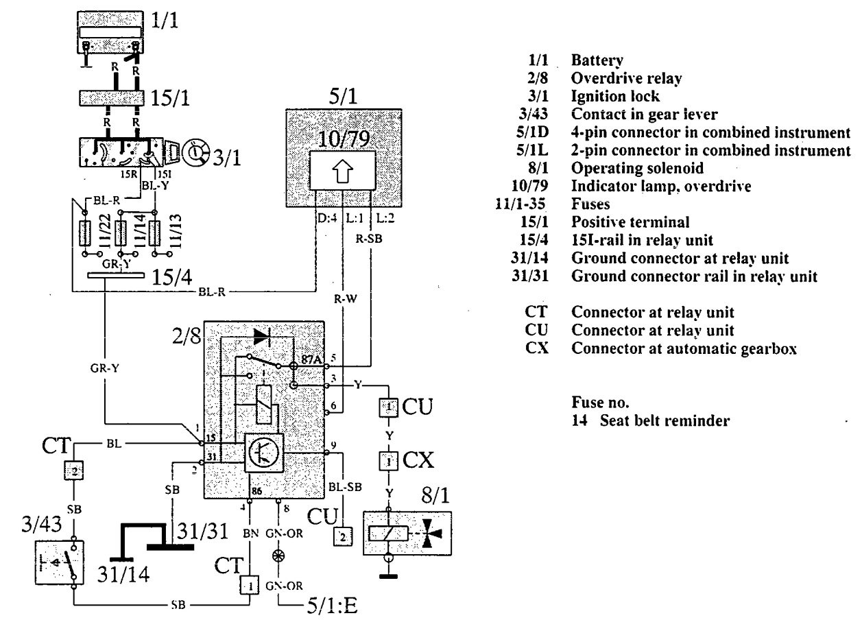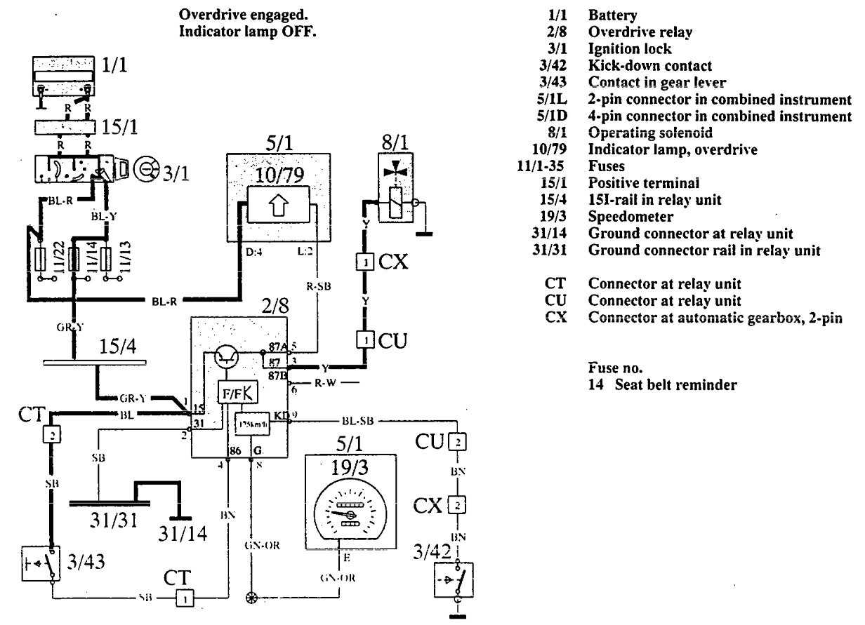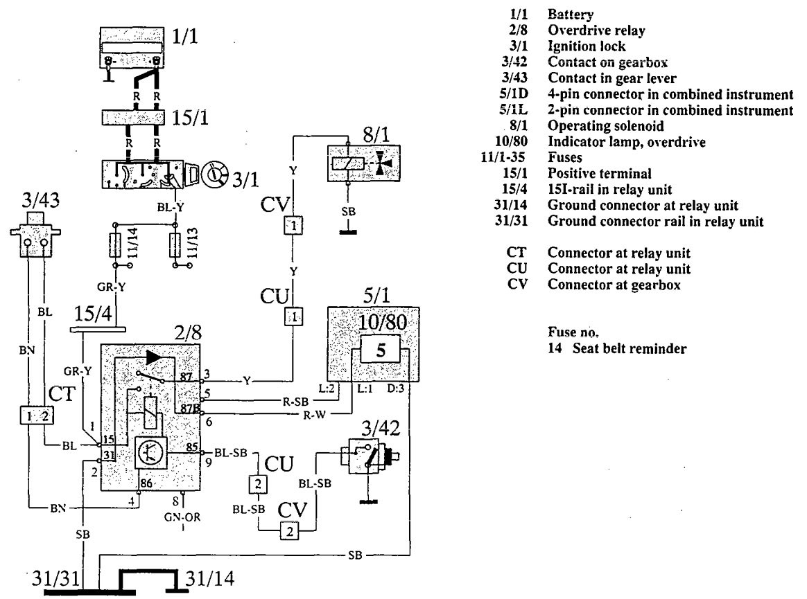 Volvo 960 (1992 – 1994) – wiring diagrams – overdrive controls