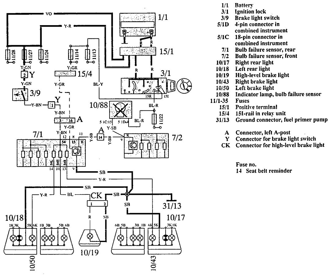 Volvo 960 (1992 – 1994) – wiring diagrams – stop lamp