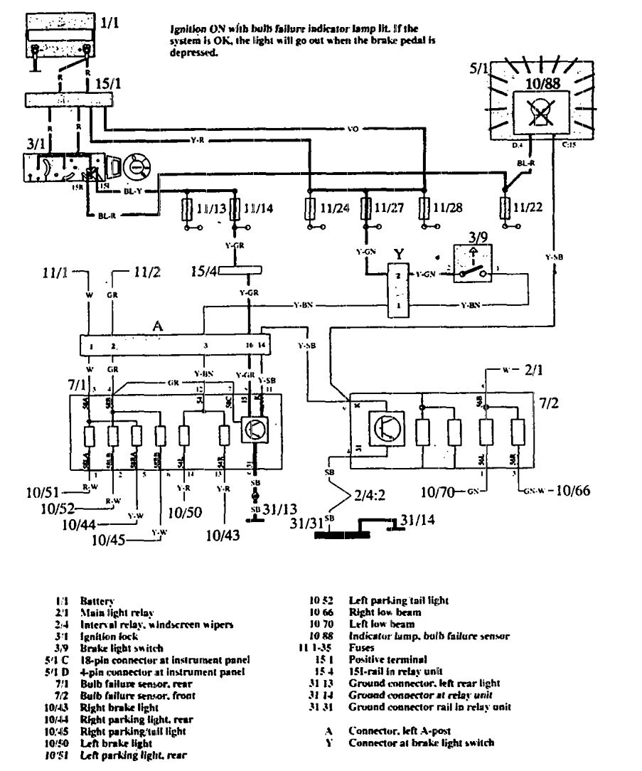 Volvo 960 (1993 – 1994) – wiring diagrams – lamp out warning