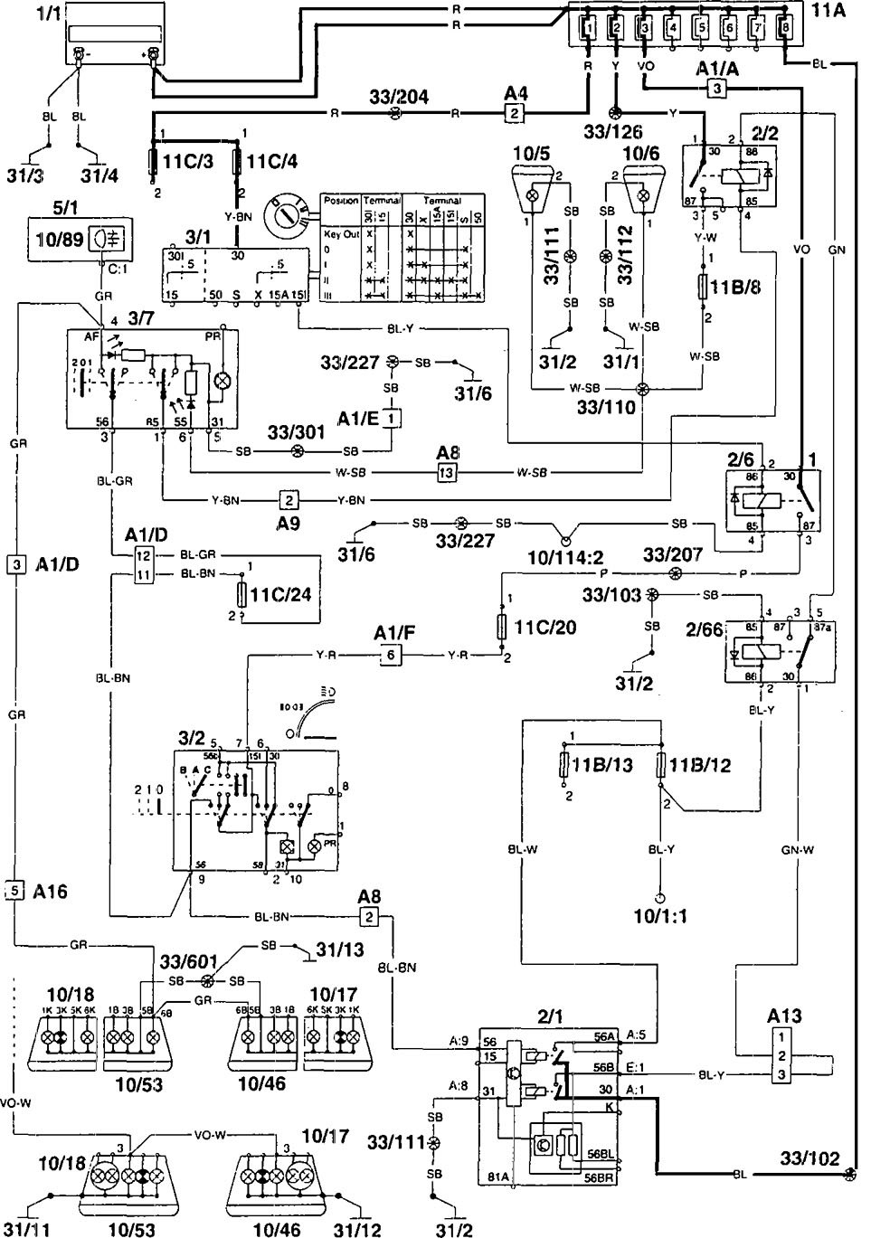 Volvo 960 (1995) – wiring diagrams – fog lamps
