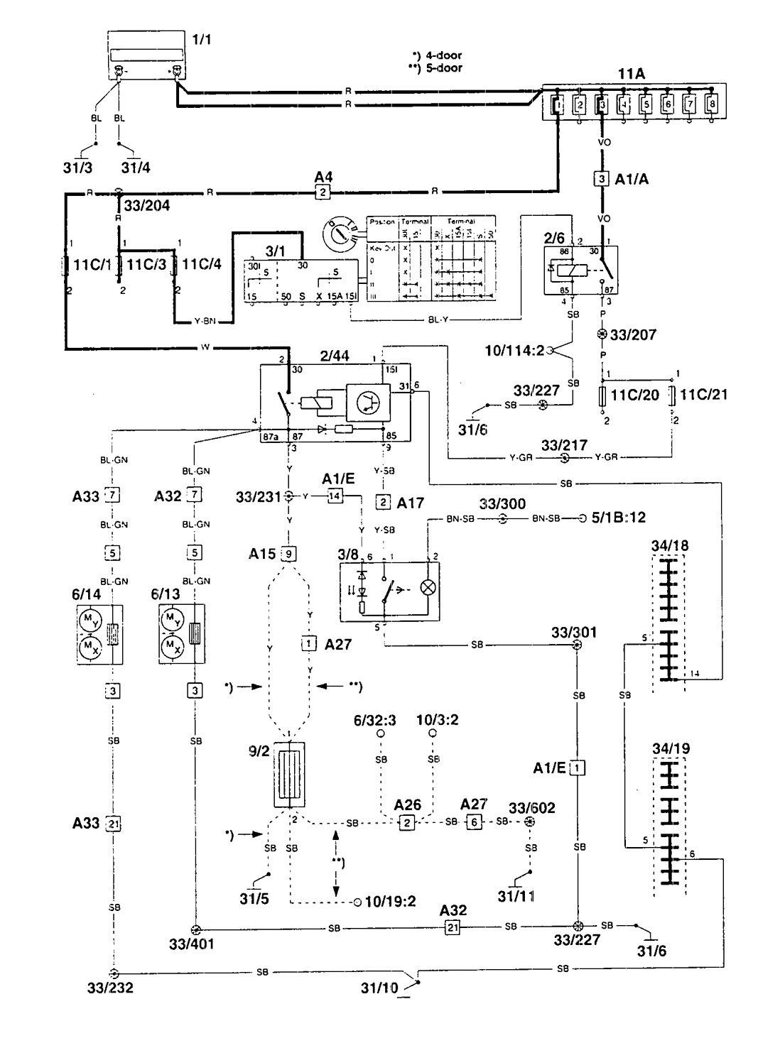 Volvo 960 (1995) – wiring diagrams – heated mirror