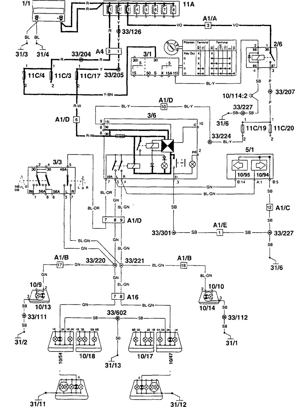 Volvo 960 (1995) – wiring diagrams – turn signal lamp