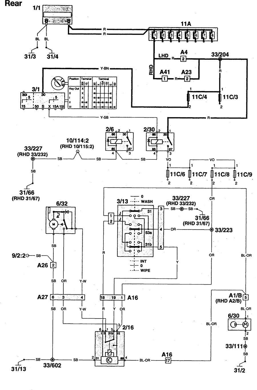 Volvo 960 (1995) – wiring diagrams – wiper/washer