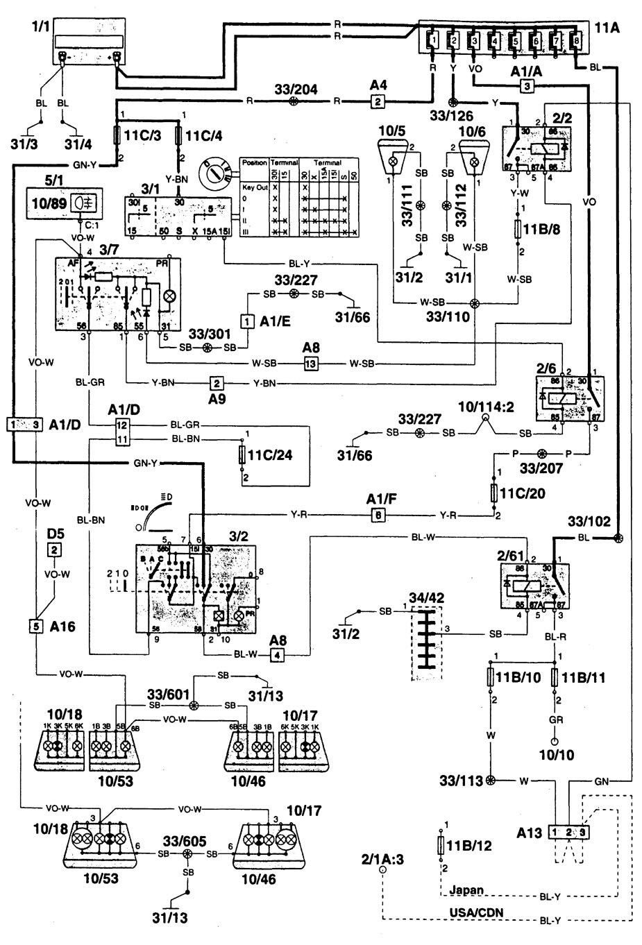 Volvo 960 (1996) – wiring diagrams – fog lamps