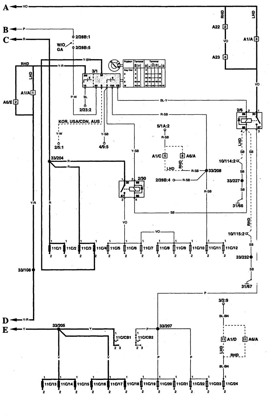 Volvo 960 – wiring diagram – power distribution (part 6)