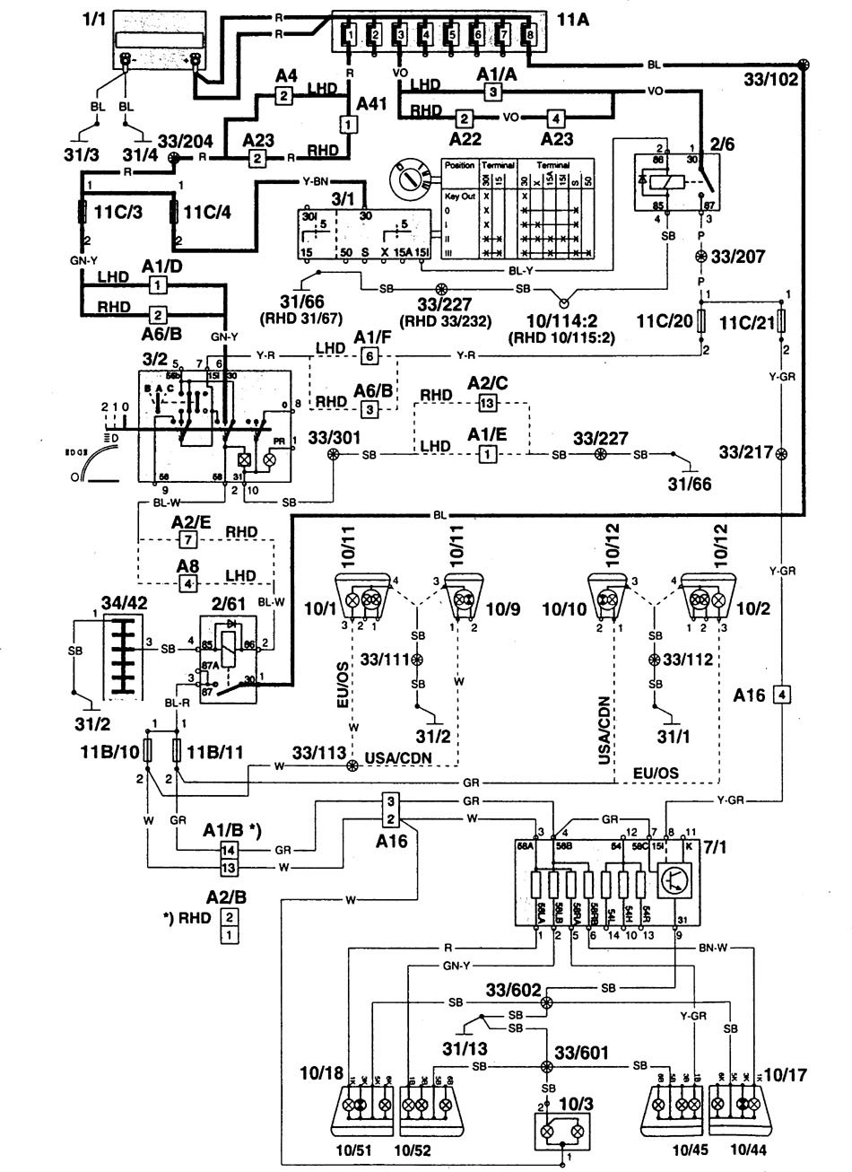 Volvo 960 (1997) – wiring diagrams – tail lamps