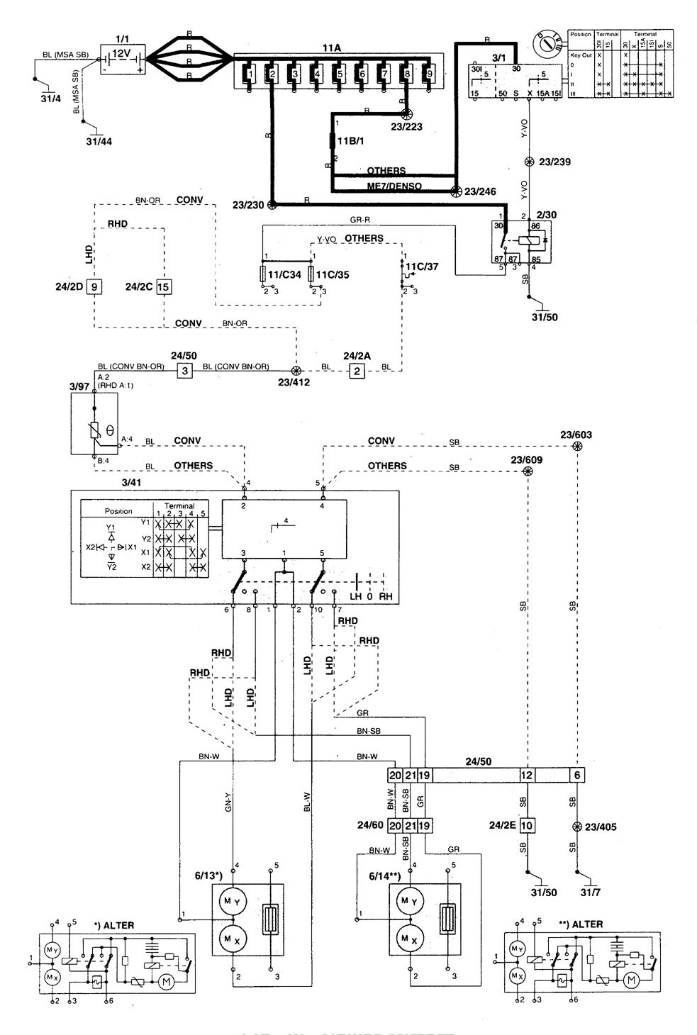 Volvo C70 – wiring diagram – power mirrors (part 3)