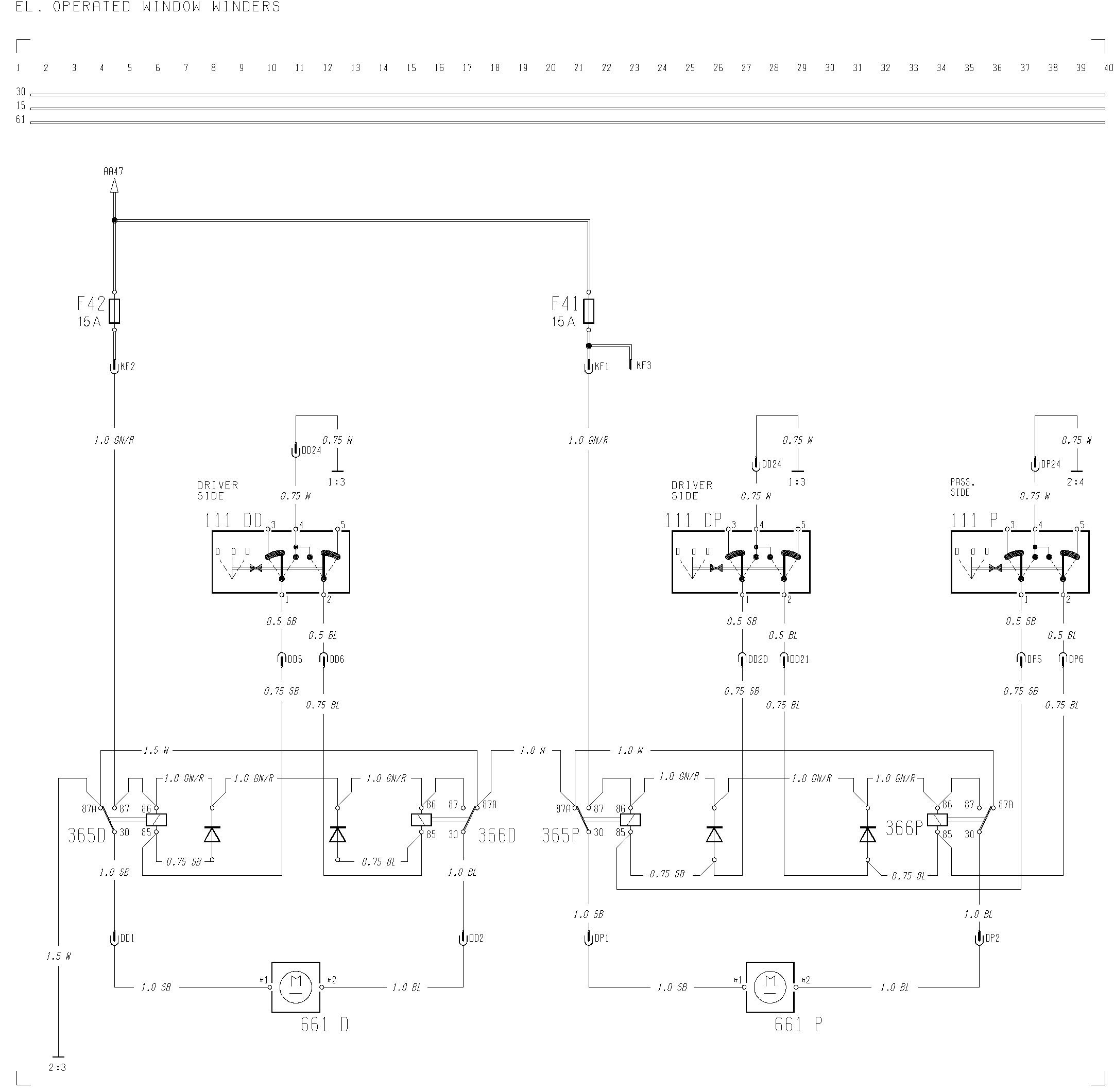 Volvo F12, F16 – wiring diagram – el. operated window winders