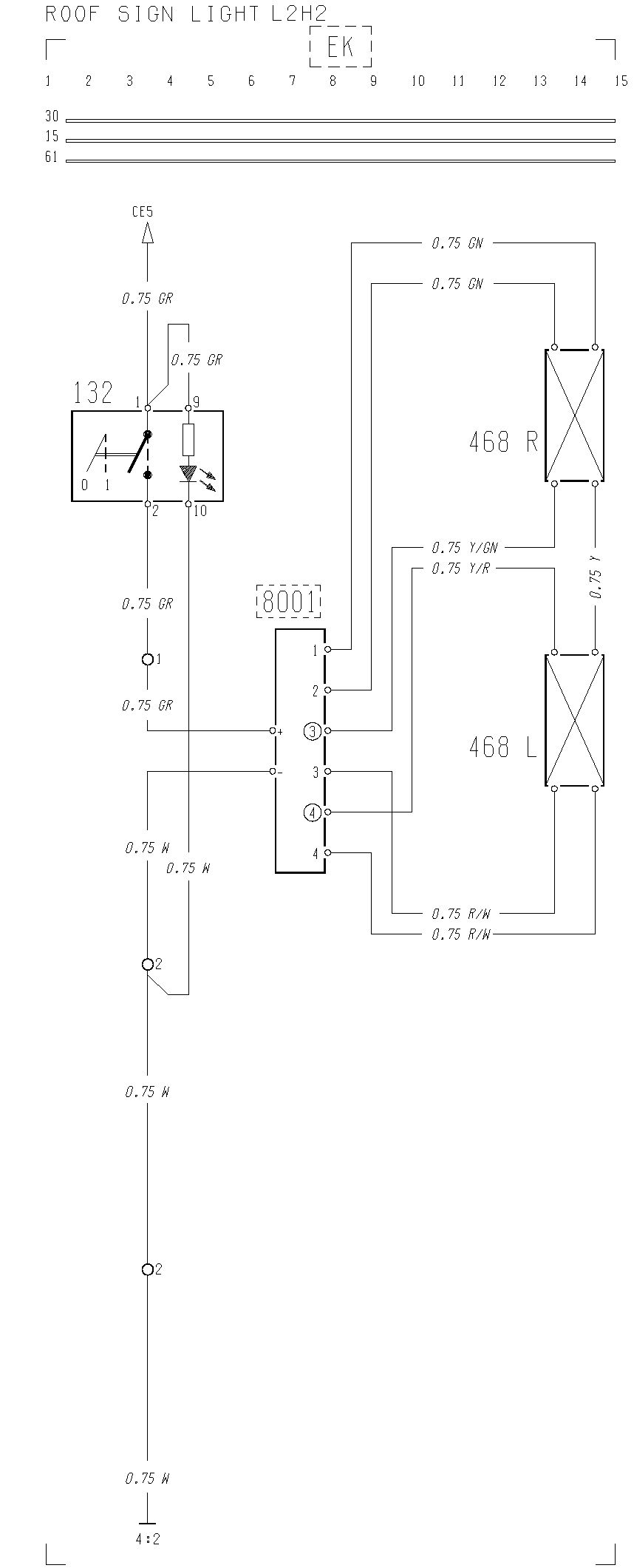 Volvo F12, F16 – wiring diagram – roof sign light L2H2